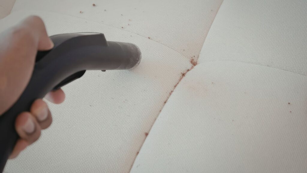 Fabric cushions take the worst of it. They soak up spills quickly, hang onto moisture, and give bacteria exactly what it’s looking for. Add in crumbs slipping into the seams, and it’s basically a buffet down there.